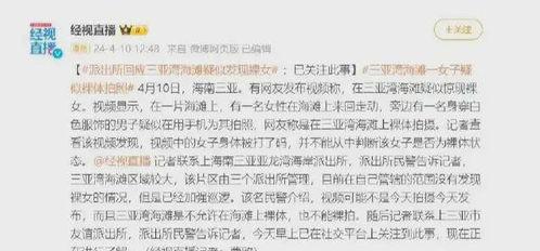 最近网上可是炸开了锅,一个关于三亚女子的爆料事件视频,简直成了大家茶余饭后的谈资。这事儿可真是不简单,从起初的神秘爆料,到后来的真相大白,每一个环节都让人忍不住想要一探究竟。下面就让我带你来回顾一下这个事件的始末,看看它究竟是怎么回事。